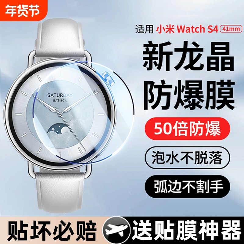 📚 适用小米WatchS4钢化膜秒贴41mm手表S4Sport小米运动智能表盘Watch3esim版屏幕保护配件全包xiaomi贴膜防摔