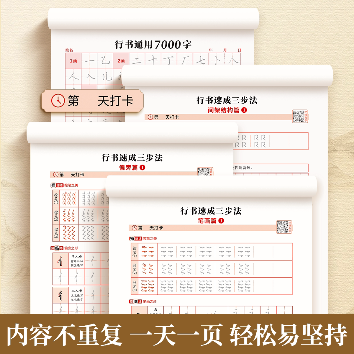 📚 【书行】行书成人练字速成三步法控笔笔画偏旁训练字帖初高中男女大学生行书通用7000字实战打卡每日一练硬笔书法纸钢笔行楷练字帖