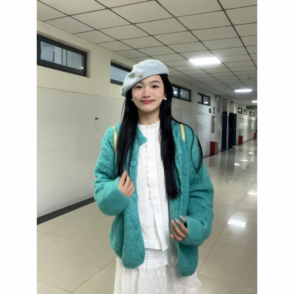 📚 自制日系慵懒风湖绿色毛衣外套女学生软糯百搭显瘦单排扣针织开衫