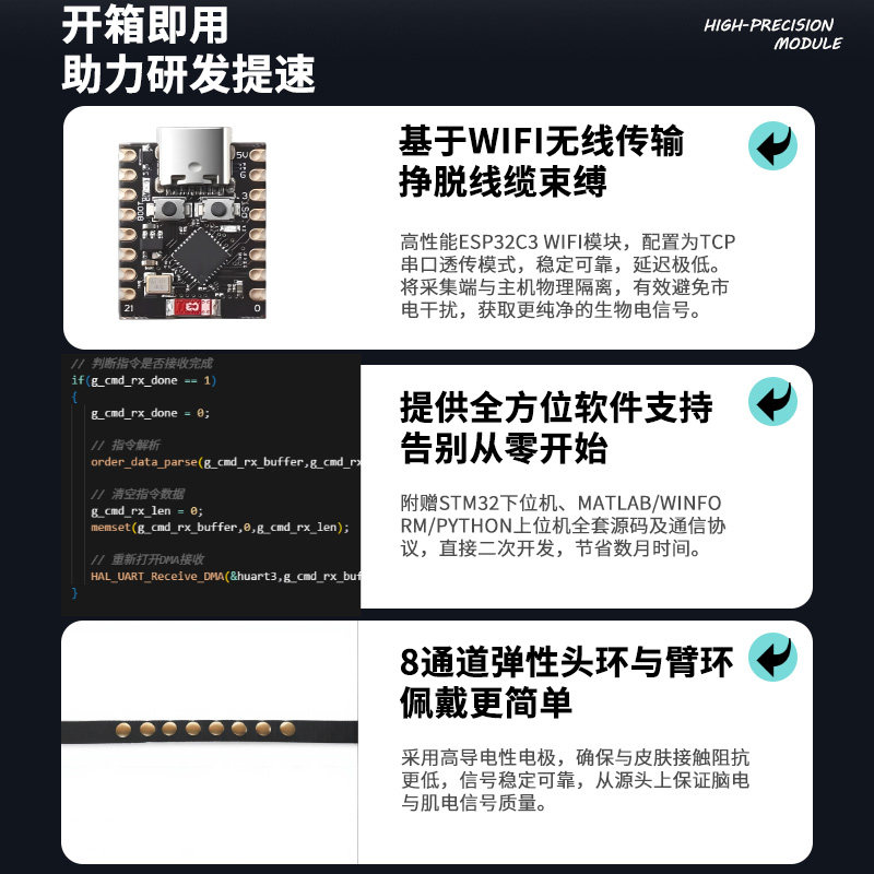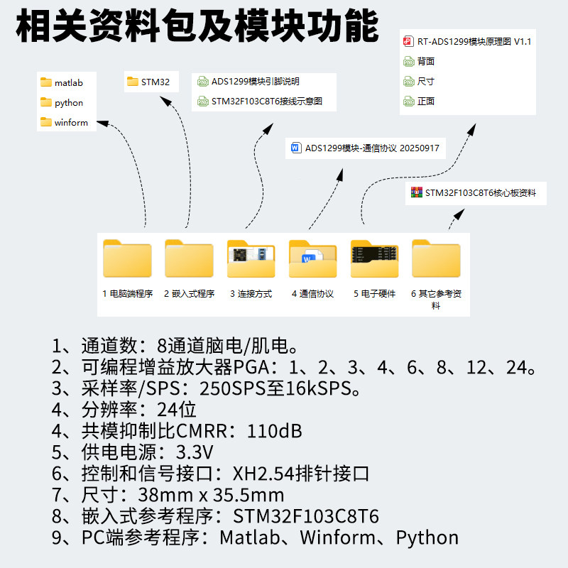 📚 ADS1299模块EEG脑电EMG肌电采集模块开发套件STM32开发套件