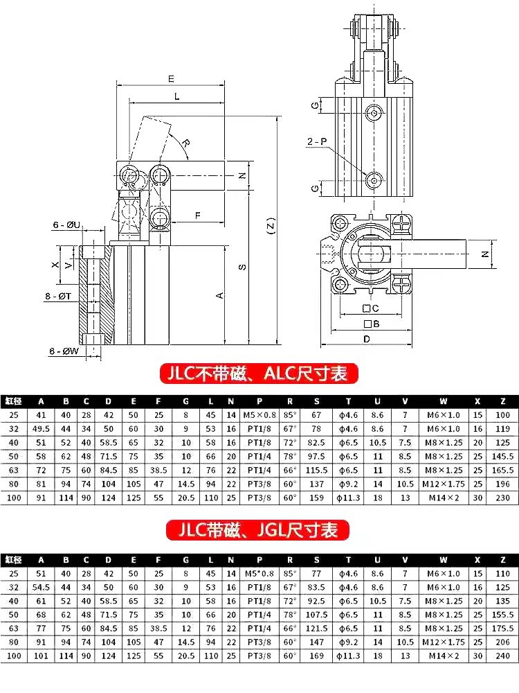 📚 亚德客JGL杠杆气缸气动下压25/32/40/50/63双压板夹紧摇臂夹具ALC