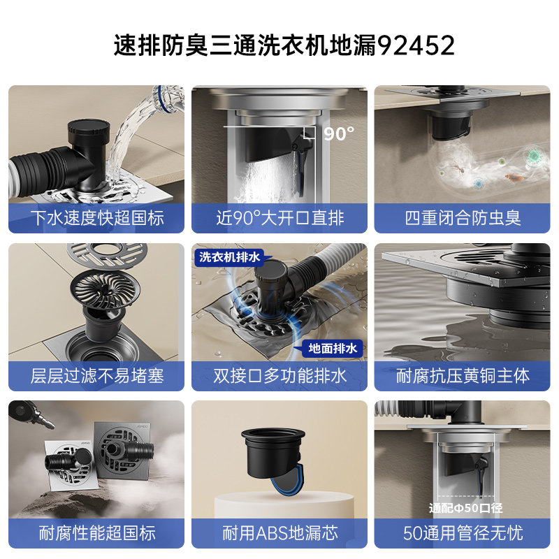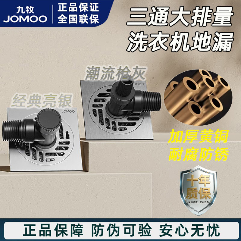 📚 九牧卫浴枪灰洗衣机地漏防臭卫生间防虫臭家用浴室大排量防返水