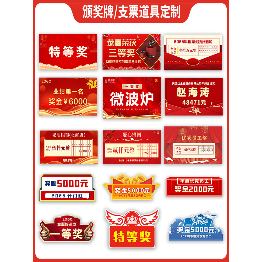 📚 公司年会活动颁奖支票奖金拍照道具手举牌陪嫁展示牌kt泡沫板定制