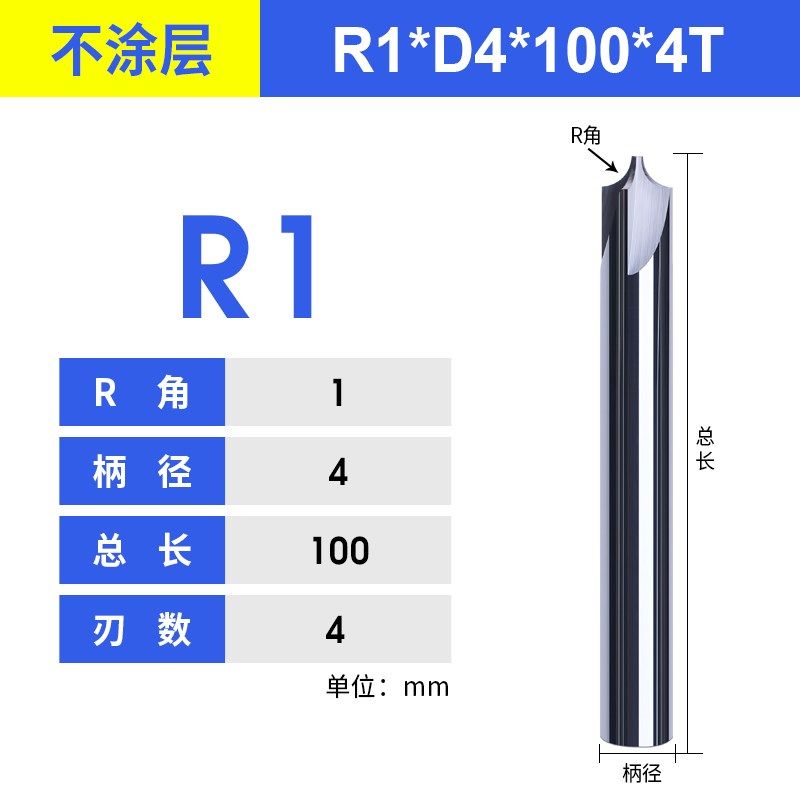 📚 RL 钨钢加长内R铣刀合金圆角铣刀 R0.5-R7圆弧倒角刀数控加工CNC