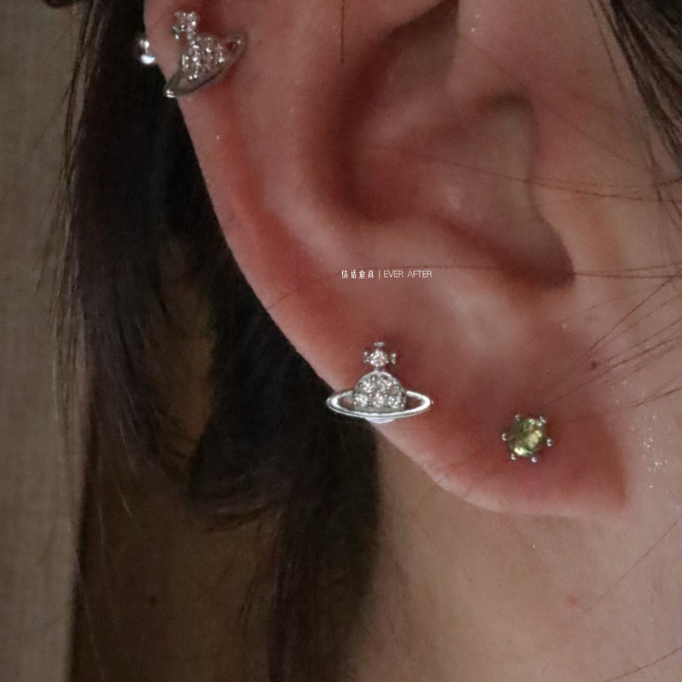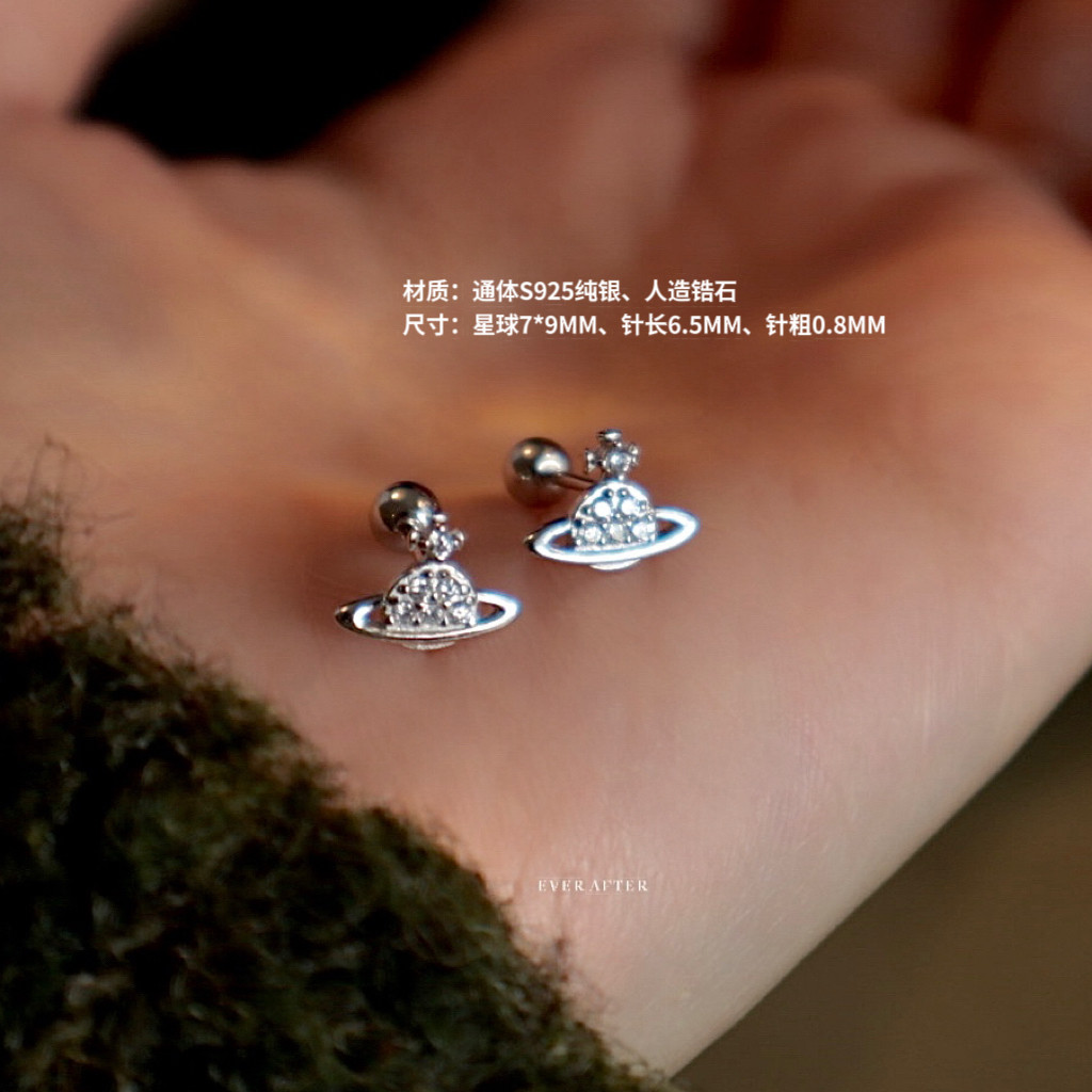 📚 迷你镶钻土星耳钉s925纯银拧螺丝耳骨钉睡觉不用摘高位耳垂耳廓钉