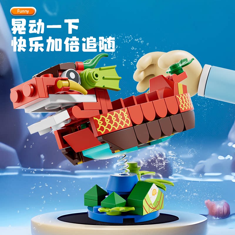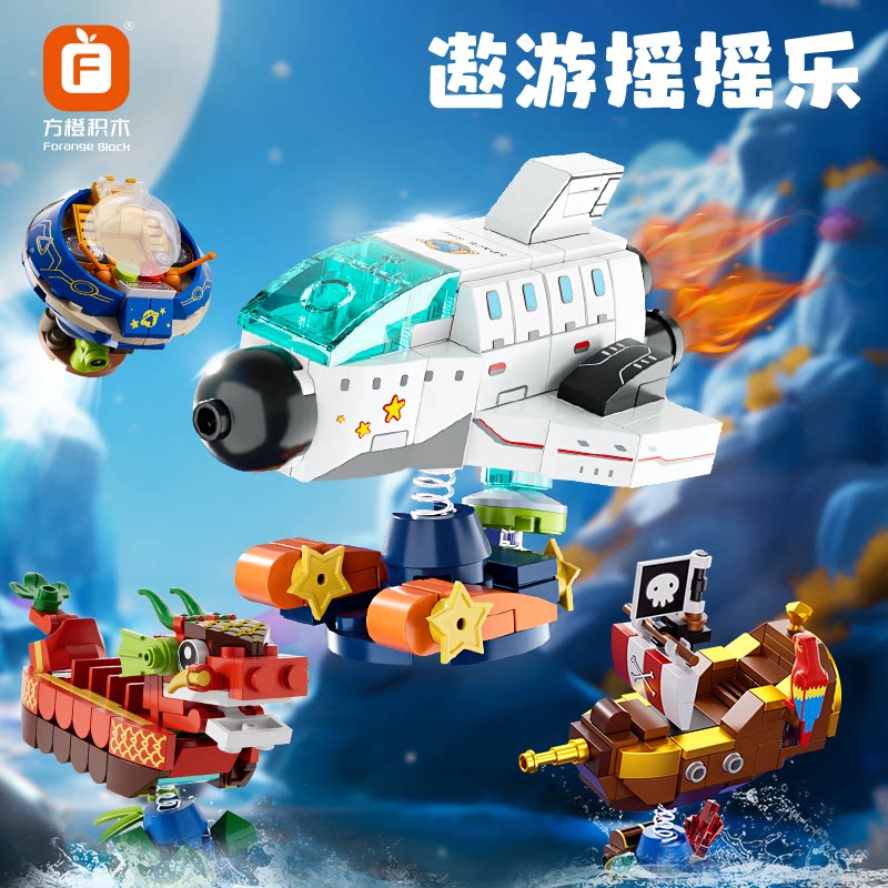 📚 方橙积木儿童益智小颗粒拼装玩具龙舟男孩海盗船拼图模型摆件礼物