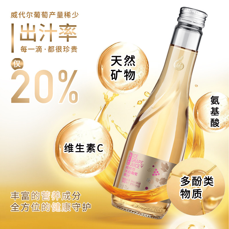📚 林源春长白山威代尔冰白葡萄原汁nfc鲜榨100%果汁300ml*9瓶饮料