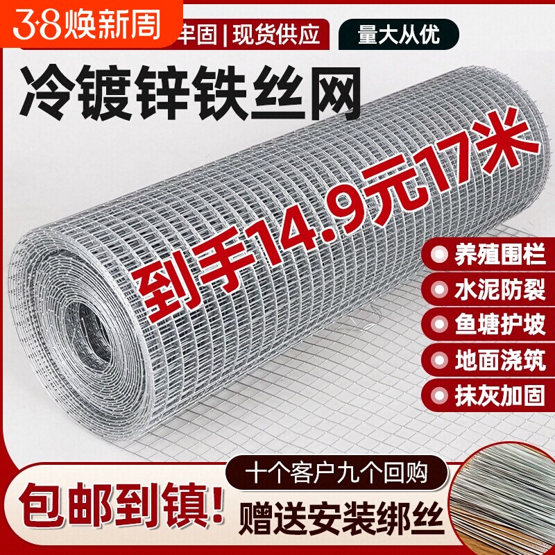 📚 镀锌铁丝网围栏防锈拦菜园护栏网防裂抹墙养殖网防护鸟笼抹灰网格