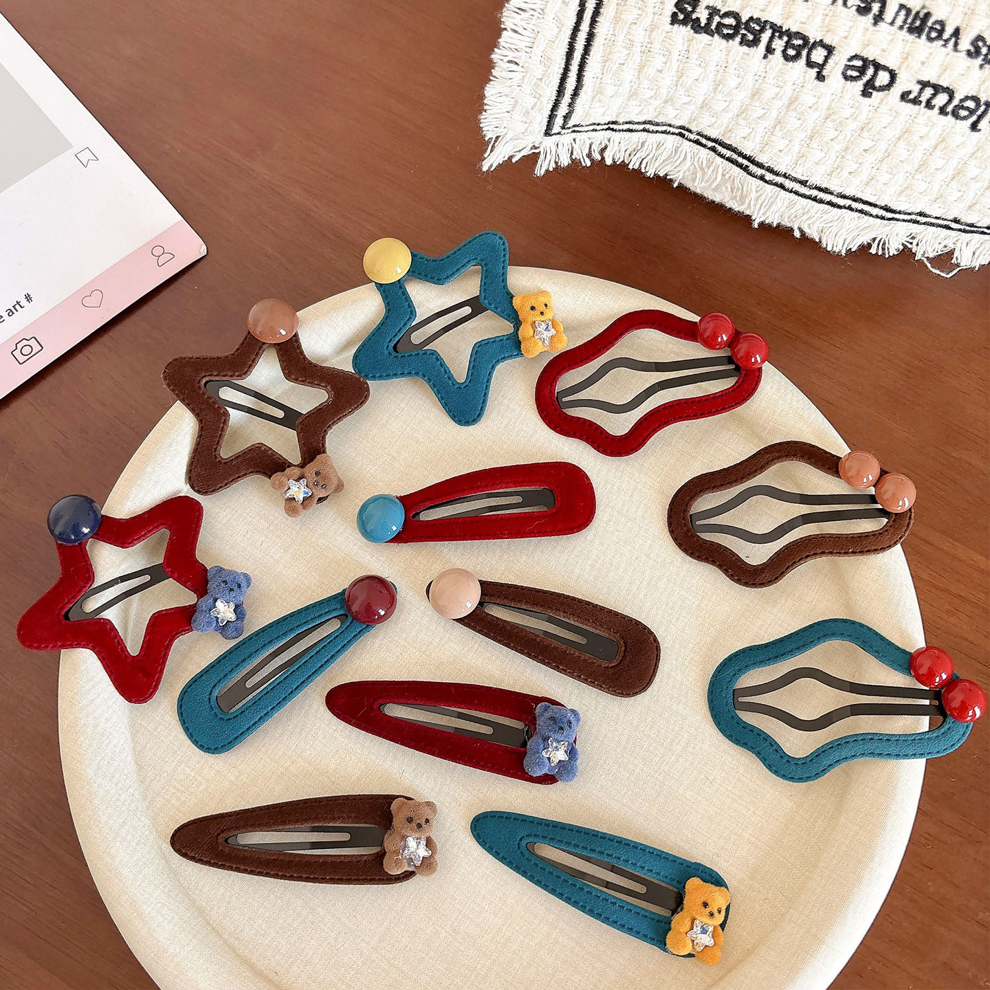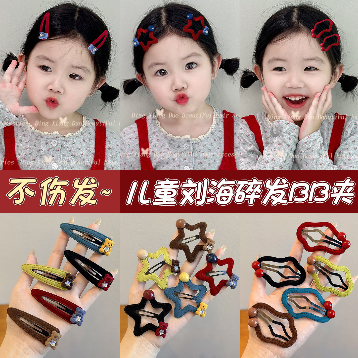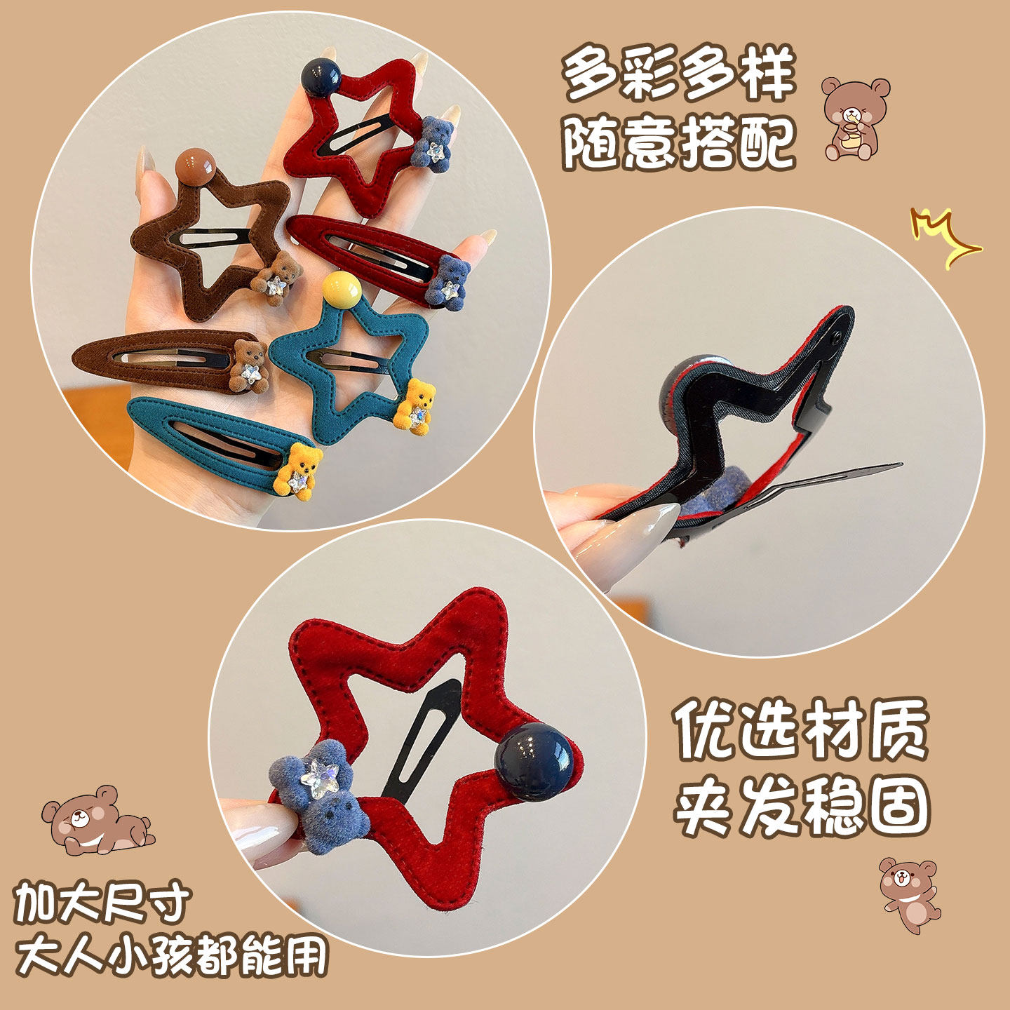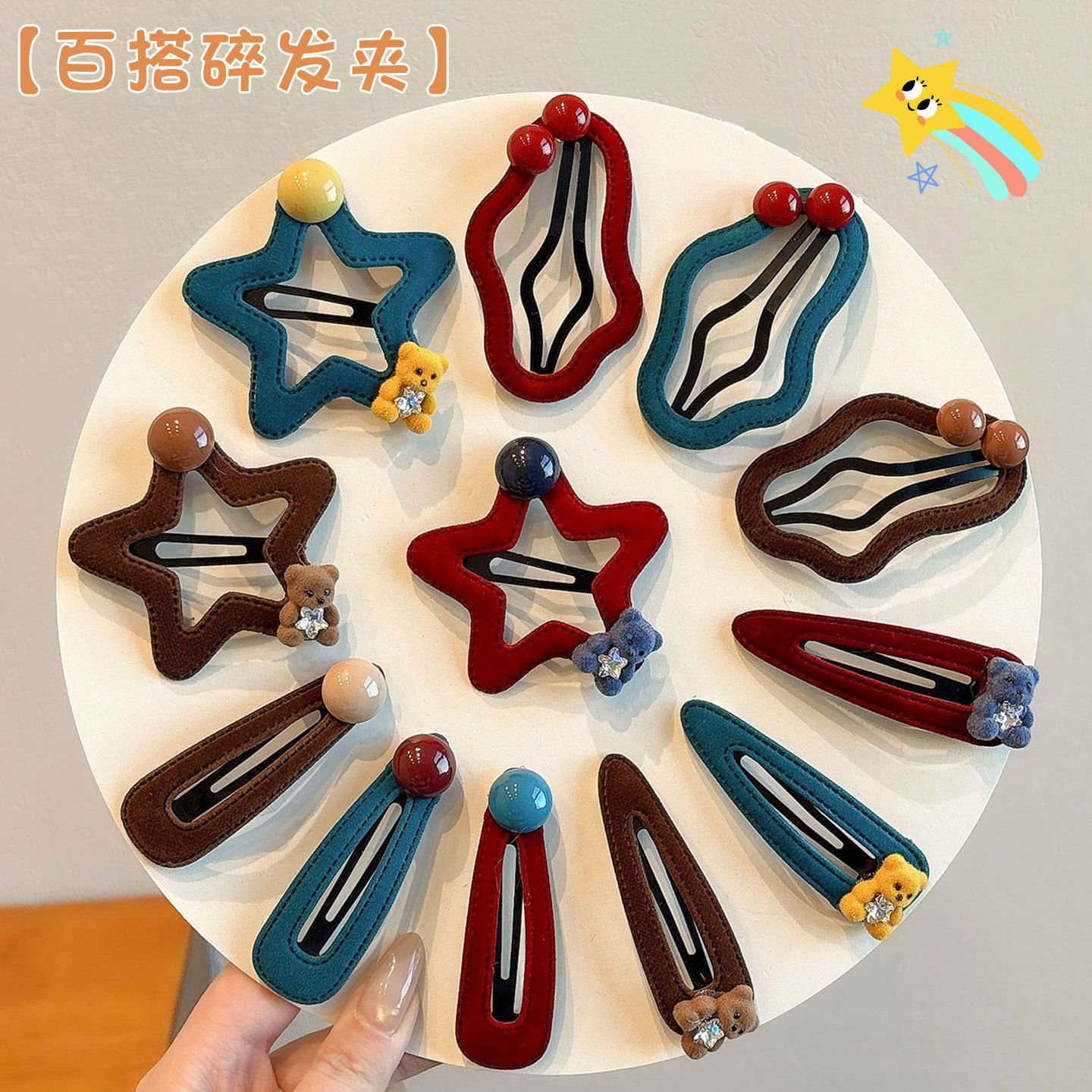📚 儿童植绒五角星星发夹女童可爱小熊侧边发卡小女孩百搭碎发夹发饰