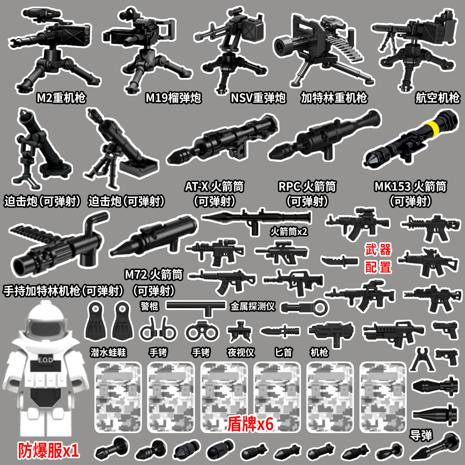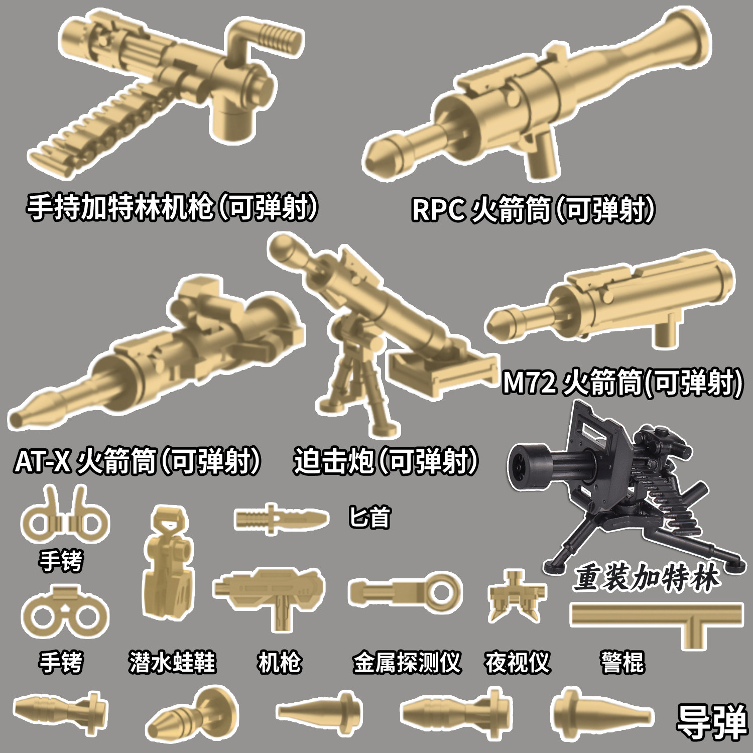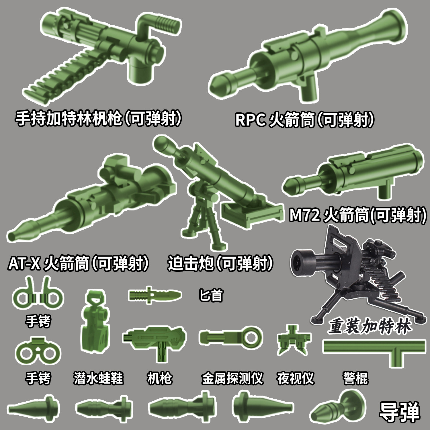 📚 适用乐高军事积木人仔武器重机枪发射加特林火箭筒小人偶玩具配件