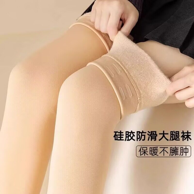 📚 秋冬加绒加长过膝长筒袜肤色水光硅胶防滑大腿根高筒袜踩脚光腿神