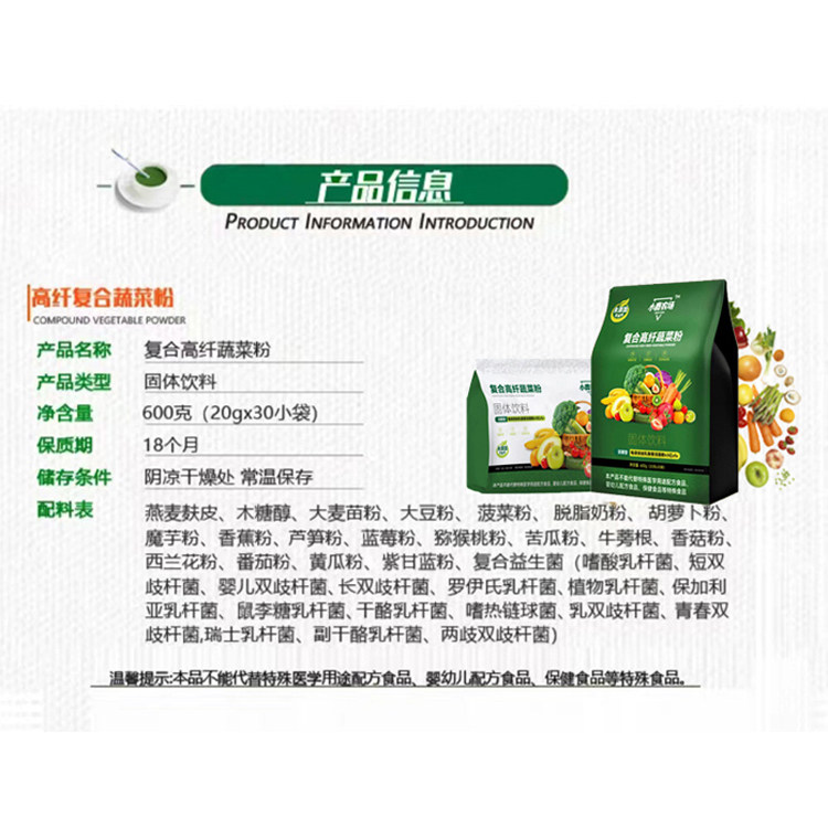 📚 小鹿农场无蔗糖高膳食纤维健身老年人流食代餐儿童营养冲泡蔬菜粉