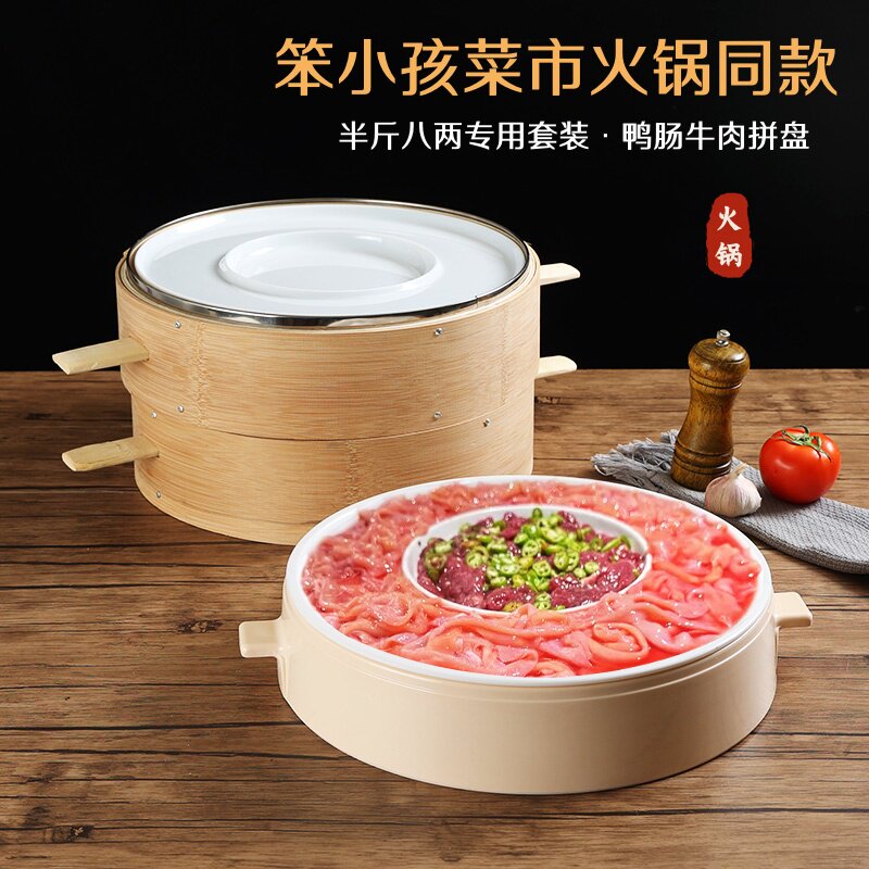 📚 笨小孩菜市火锅店同款半斤八两创意网红套装鸭肠牛肉拼盘商用餐具