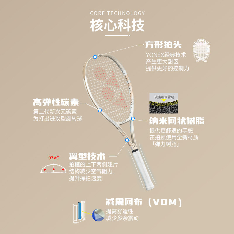 📚 YONEX尤尼克斯网球拍VCORE GAMEyy正品全碳素沙滩米黄初学进阶拍