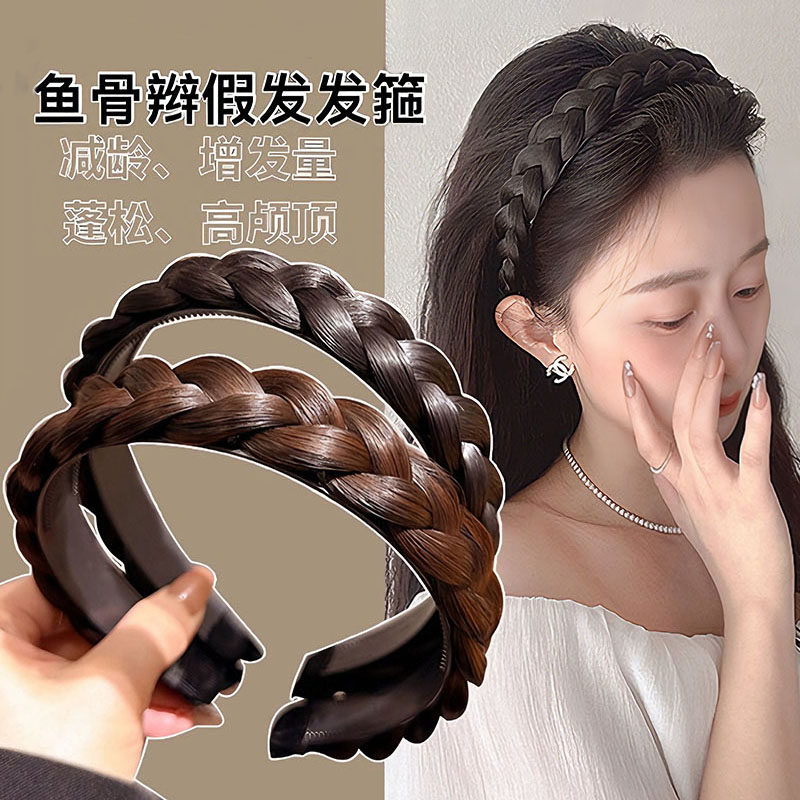 📚 鱼骨辫假发发箍2026新款麻花辫发卡发捆头饰高颅顶显发量压发头箍