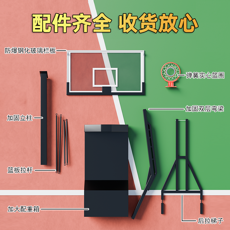 📚 勇试国标准篮球架户外成人可移动家用室外比赛专业学校篮球框架子