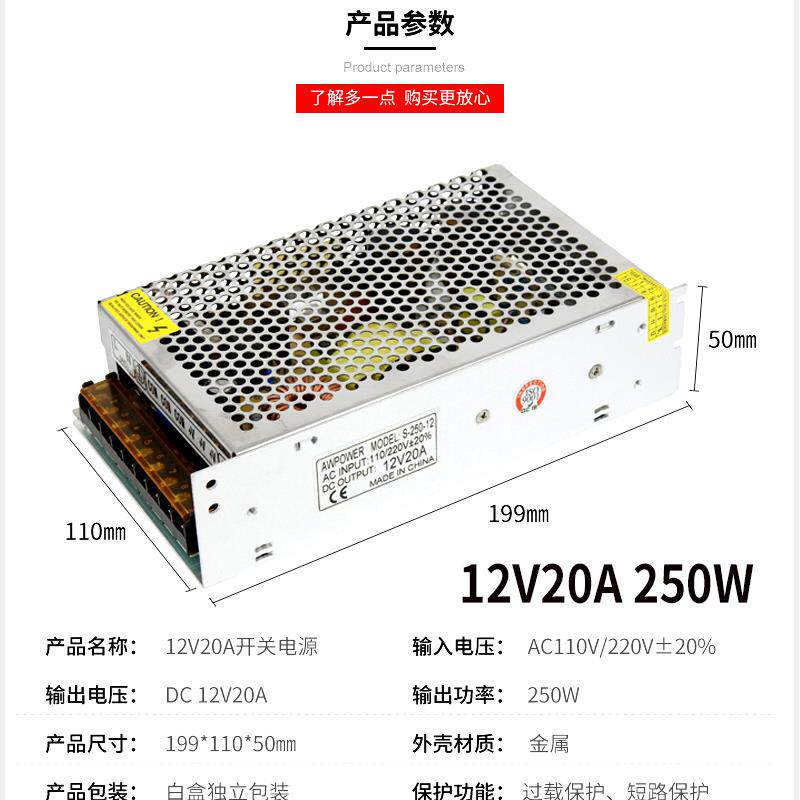 📚 12V30A开关电源220V转12V2A5A10A20A15A40A变压器60W120W250W360W