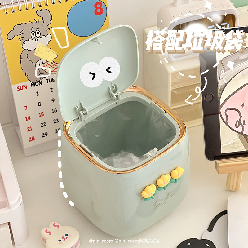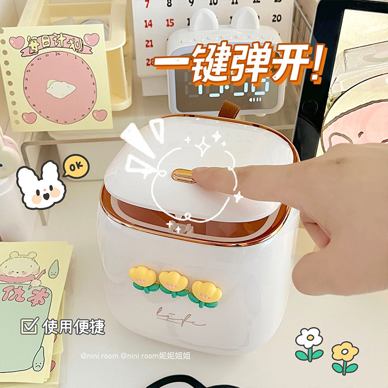 📚 轻奢垃圾桶桌面小型弹盖日式果皮纸屑收纳盒客厅宿舍桌上收纳桶女