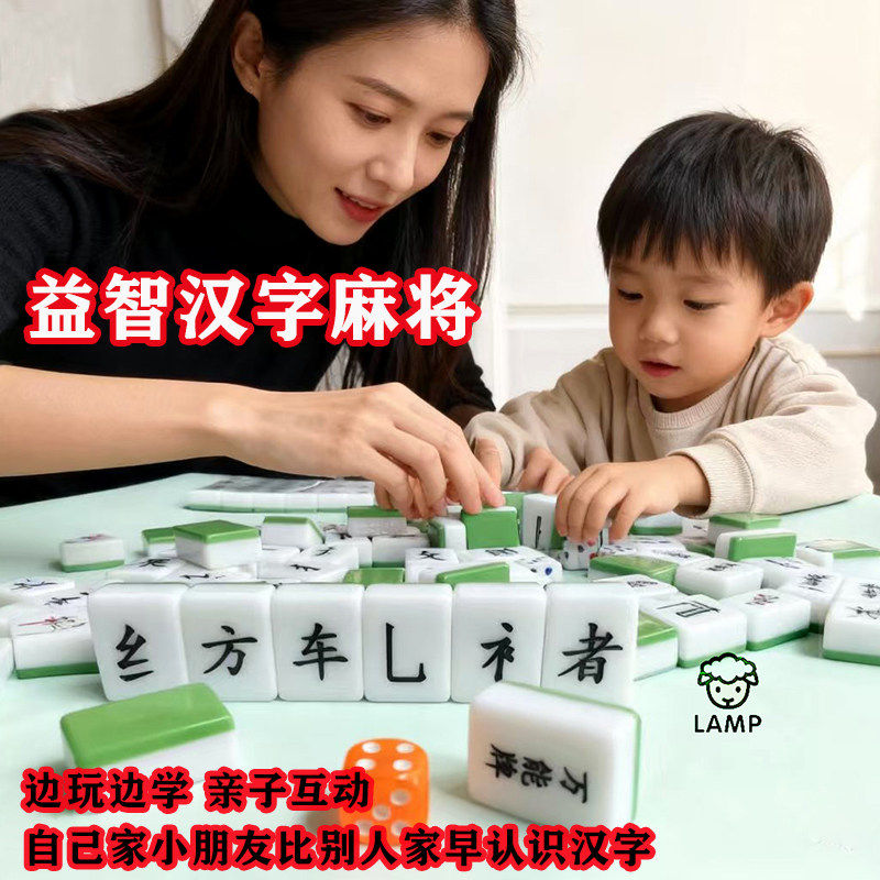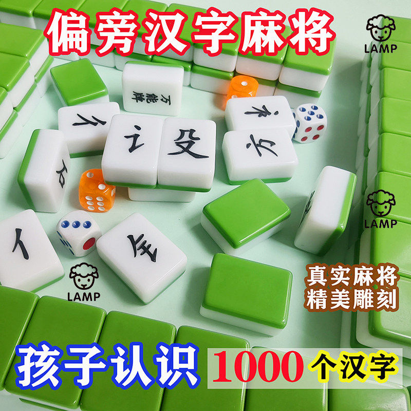 📚 儿童汉字麻将偏旁部首组词识字文字麻将魔法认字实心麻将玩具牌大