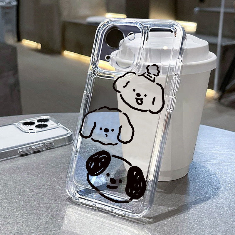 📚 三只线条小狗适用苹果15手机壳16Pro卡通vivox100透明红米note13防摔小米14一加套华为pura70荣耀200硅胶OPPO