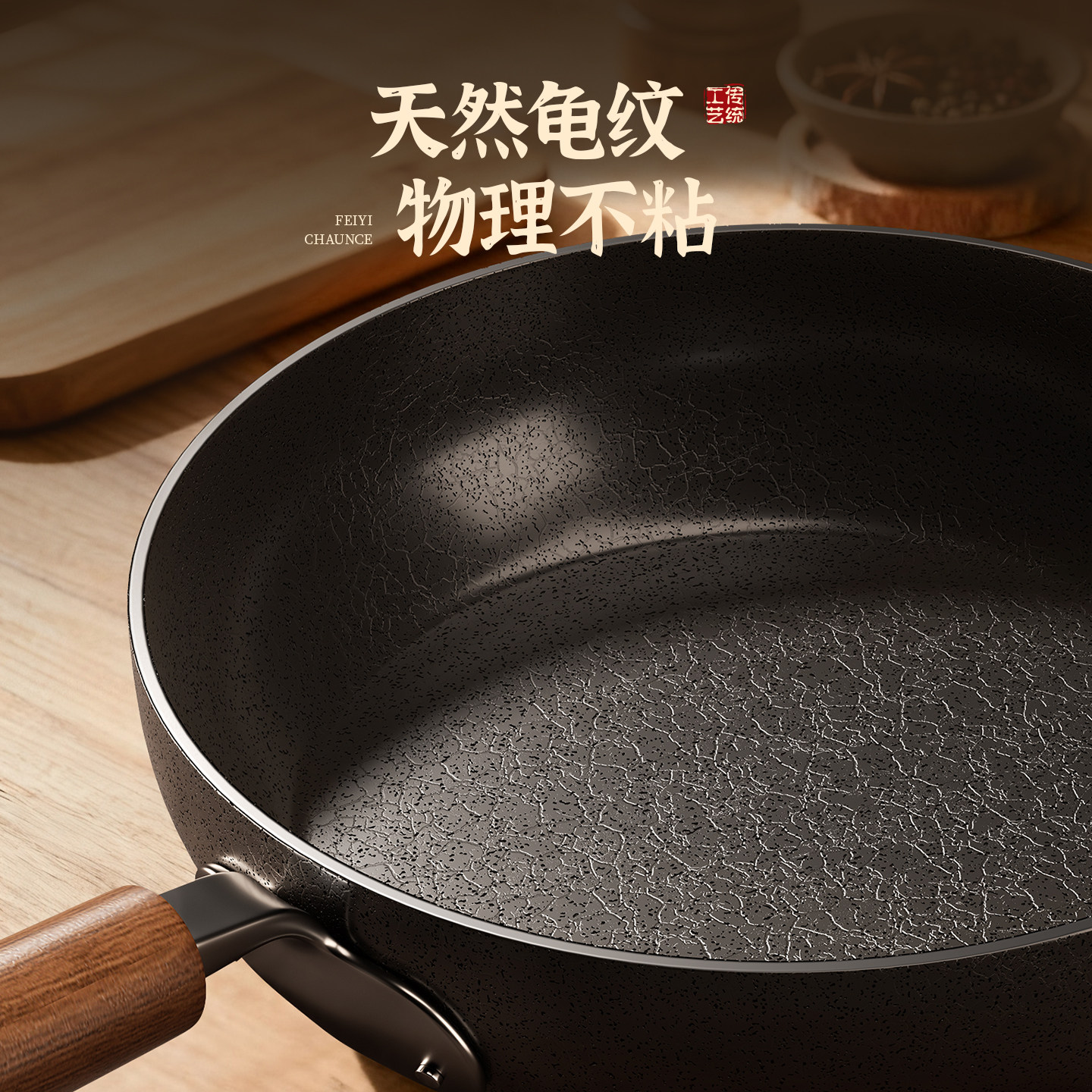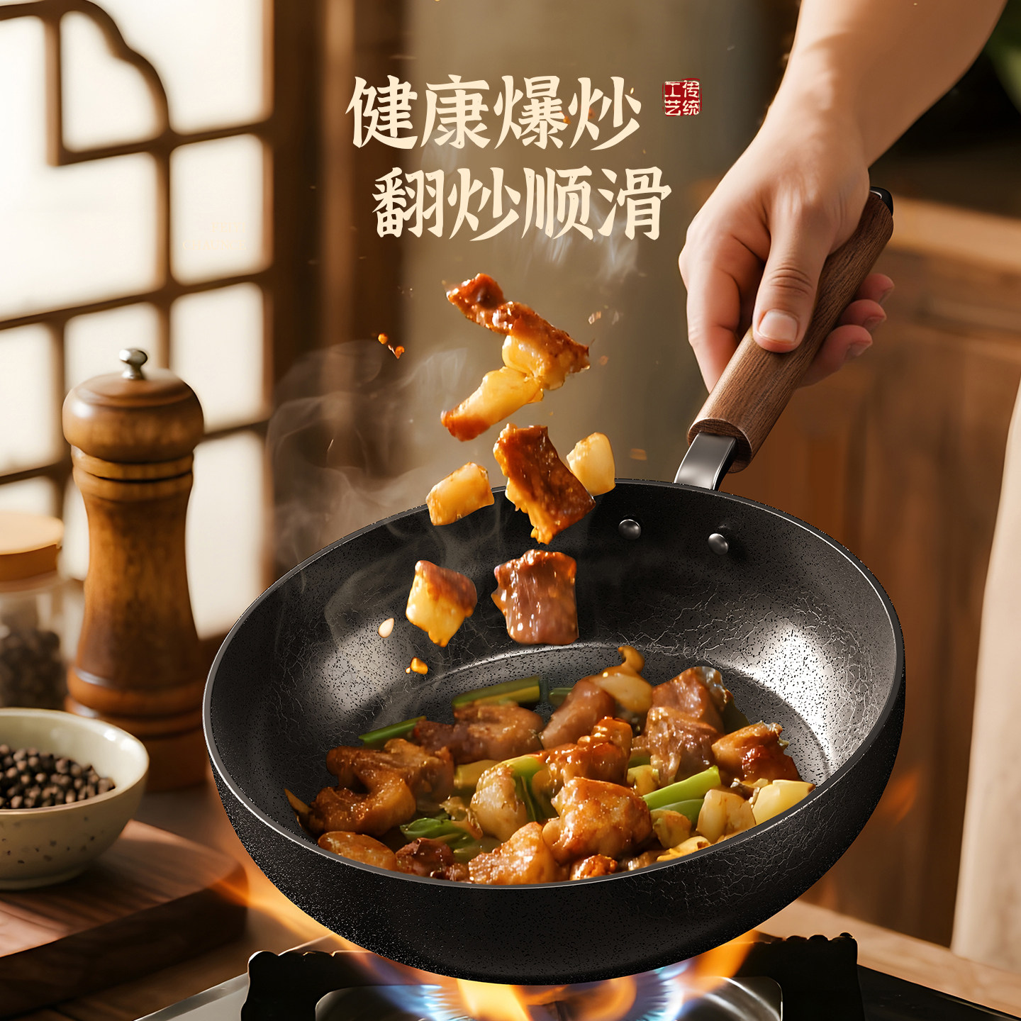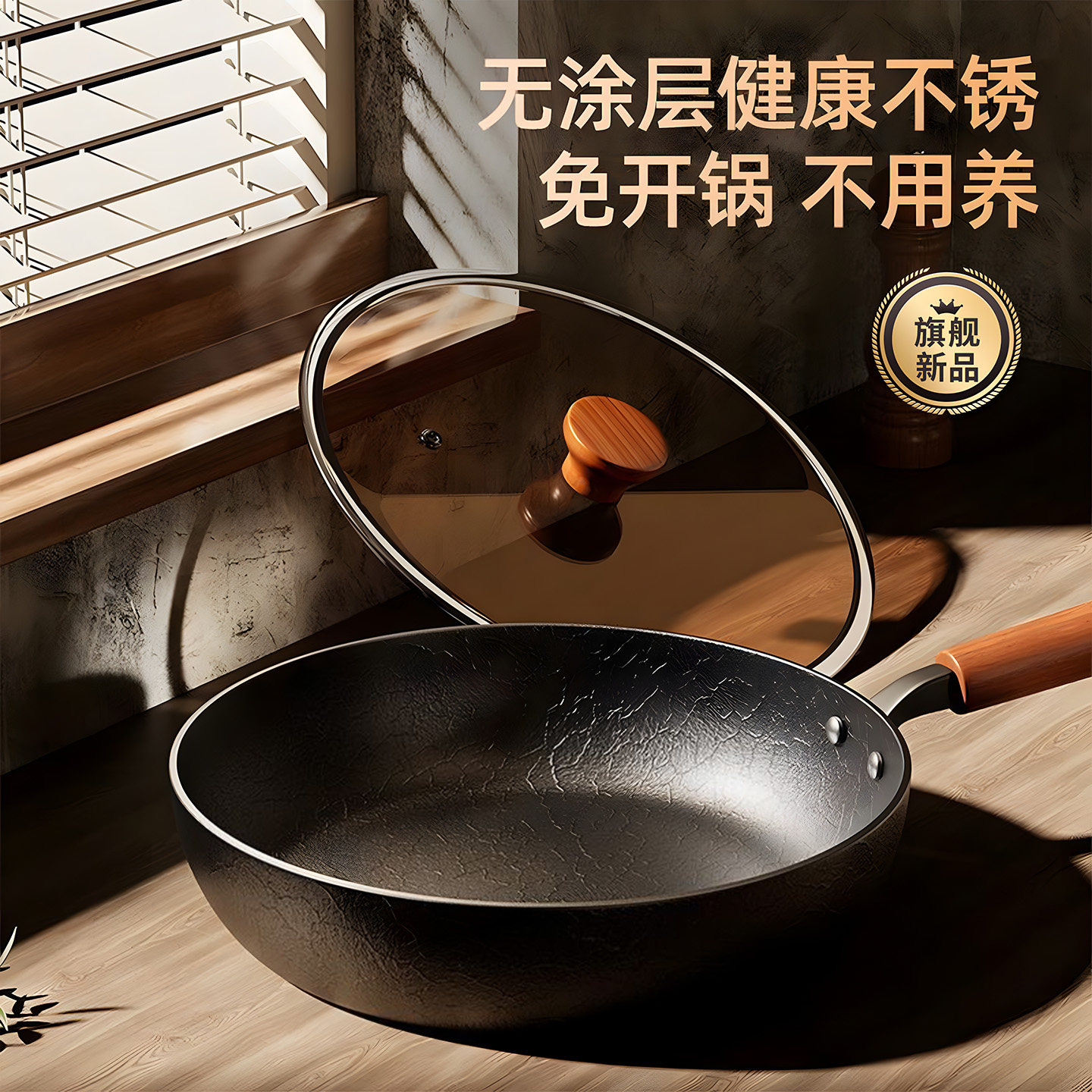 📚 铁锅家用炒菜不粘锅食品级无涂层电磁炉专用煤气灶煎蛋平地煎炒锅