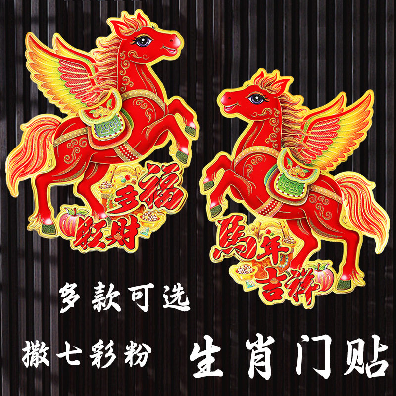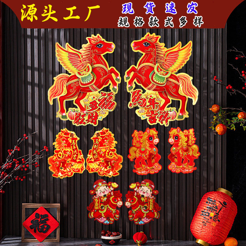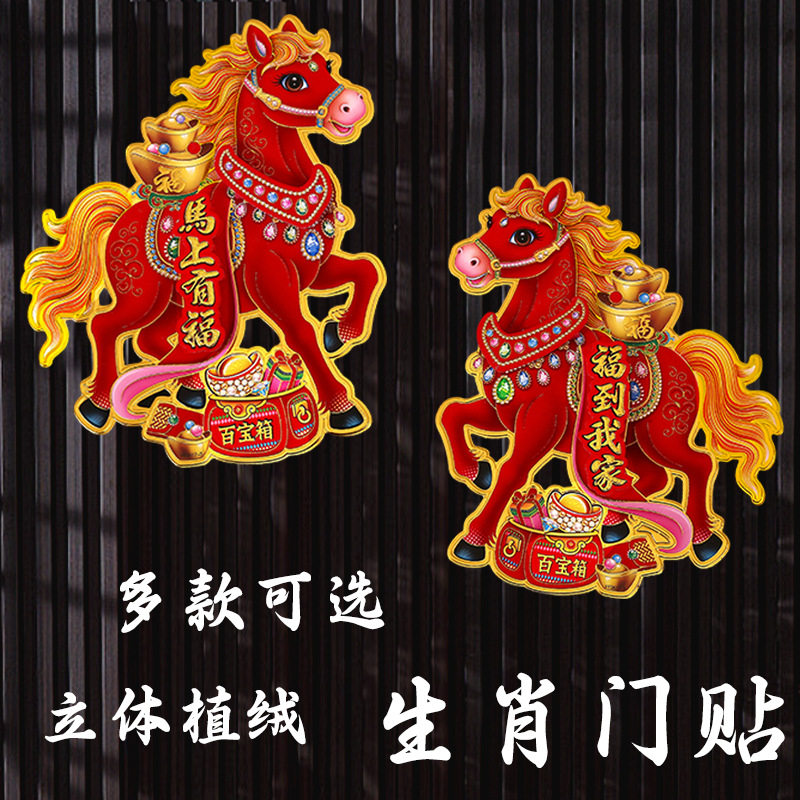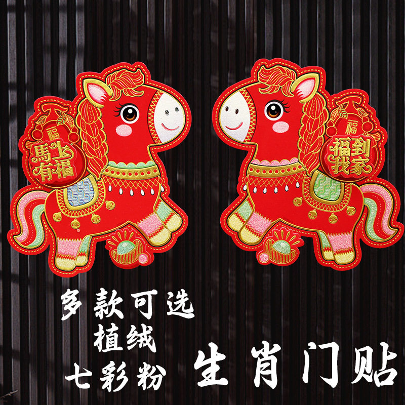 📚 爱都马年生肖対贴2026新款卡通植绒立体镂空春节过年装饰布置门画