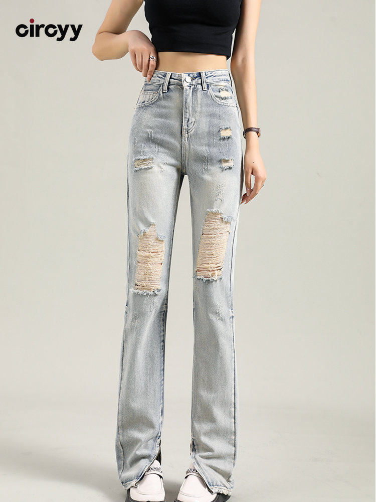 📚 Circyy Ripped Jeans Women High Waisted Straight Light Blue D