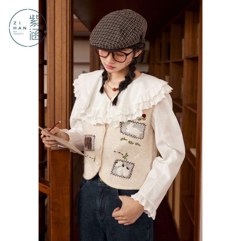 #紫涵 #短款无袖针织开衫马甲背心 #秋季新款 #休闲贴布刺绣 #V领毛衣外套 #券后价299 #时尚新品