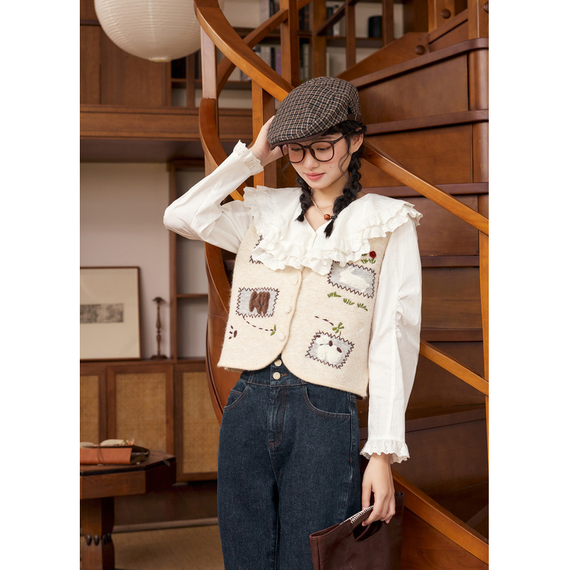 无袖开衫短款马甲刺绣