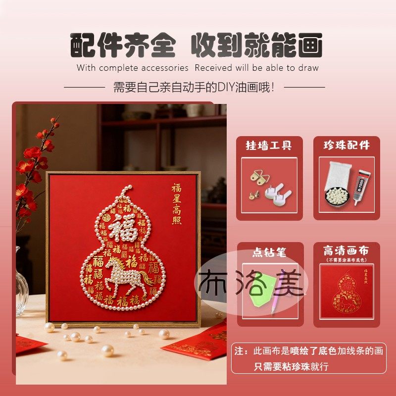 🎉家居新宠来啦!🎉 这次我要分享一款超级惊艳的家居装饰品——新中式福禄马年百福图DIY珍珠画材料全套手工装饰!简直太高级了!🎨