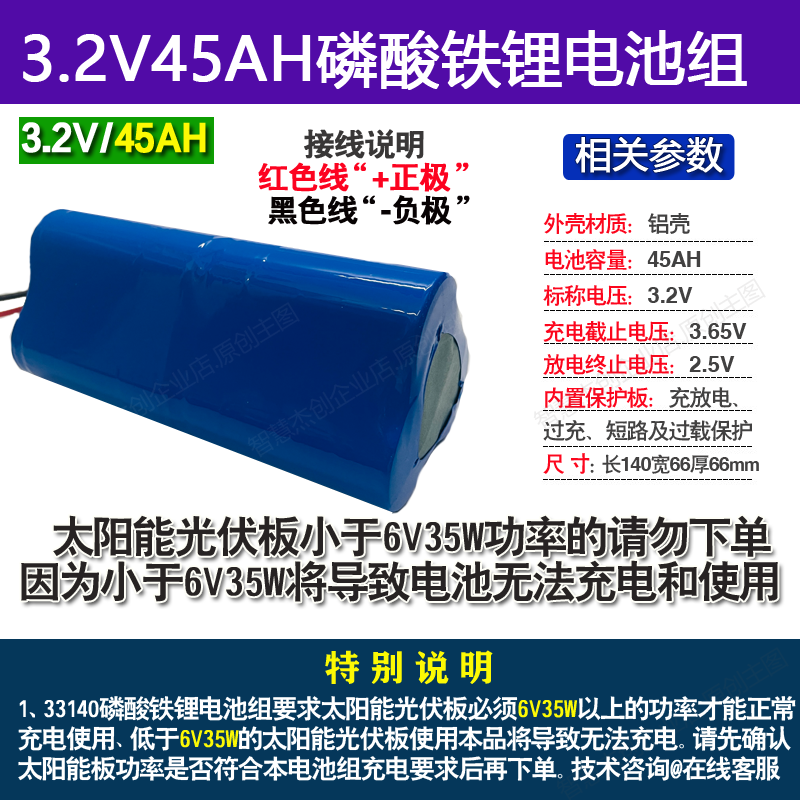 📚 3.2V太阳能灯电池33140磷酸铁锂足容量耐用路灯照明长续航蓄电池