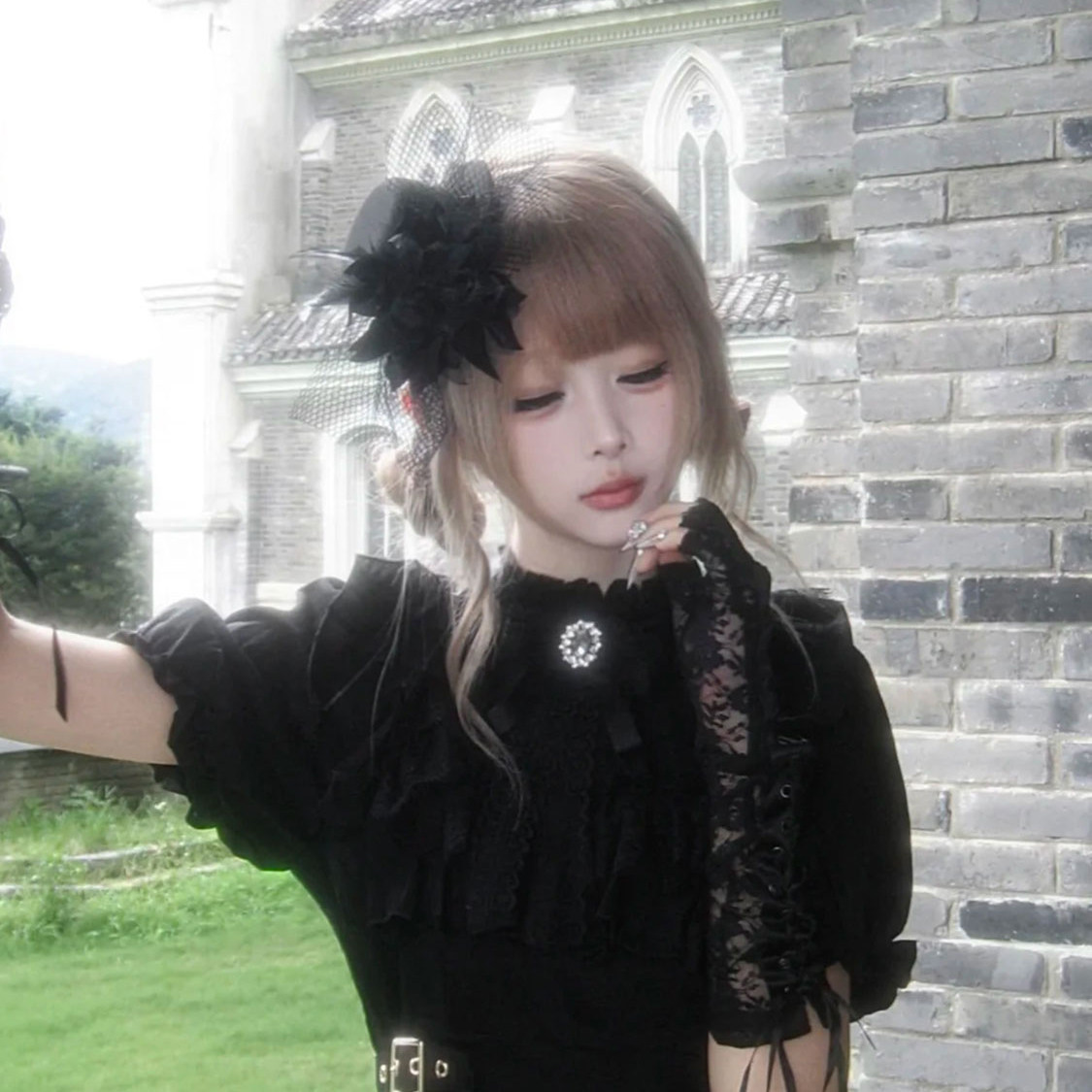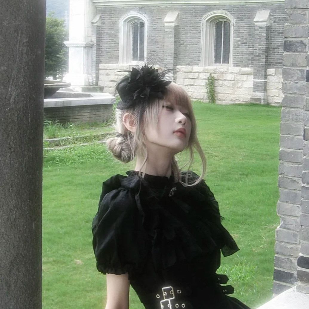 📚 赫本复古黑色网纱花朵小礼帽发夹女哥特风暗黑羽毛发饰lolita头饰