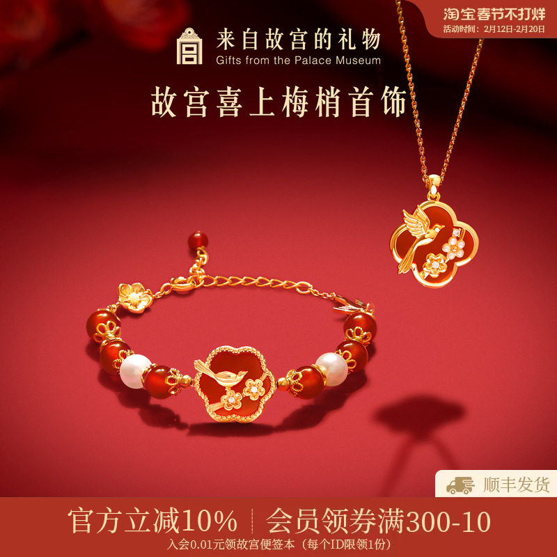 📚 故宫淘宝|喜上梅梢红玛瑙手链项链文创本命年新婚结婚订婚礼物女