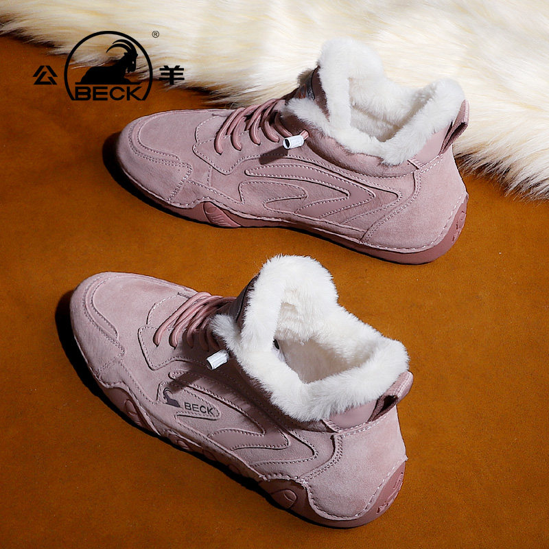 📚 公羊高帮鞋女2025新款冬季爆款女鞋真皮百搭休闲运动加绒保暖棉鞋