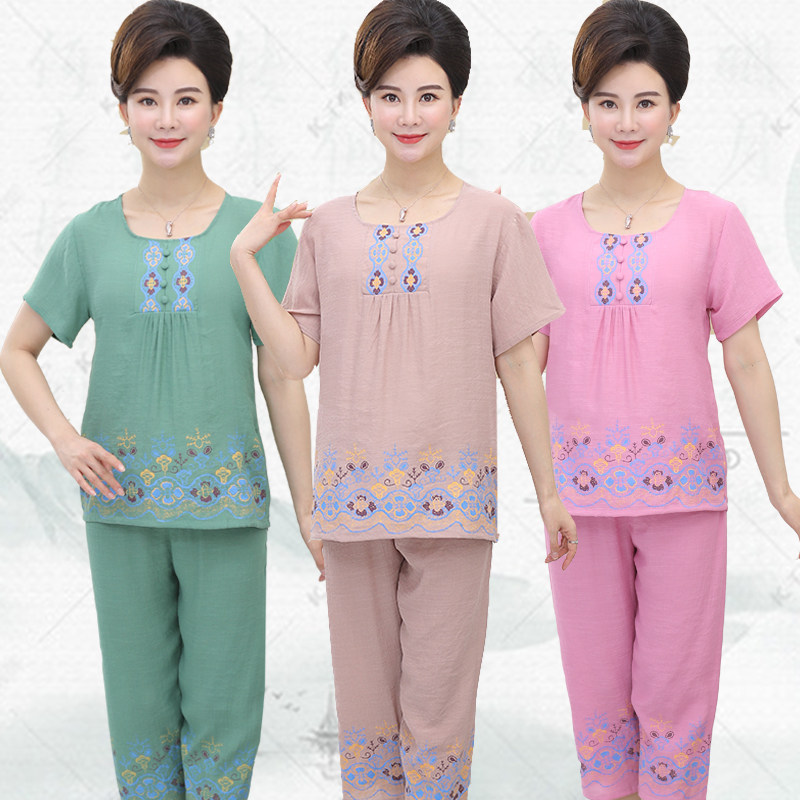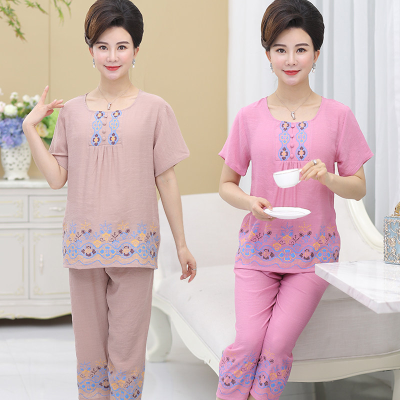 📚 棉麻睡衣女士短袖棉麻薄款夏季中老年人中年妈妈大码家居服套装夏