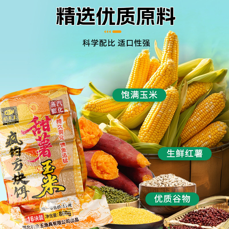 📚 钓鱼王甜薯玉米方块饵料青草鲤鳊鱼打窝料翻版爆炸钩抛竿专用鱼饵