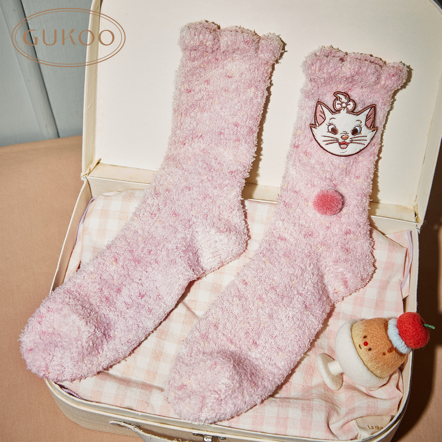 📚 果壳中筒袜女冬季玛丽猫联名新款地板绒家居袜保暖袜子女珊瑚绒袜