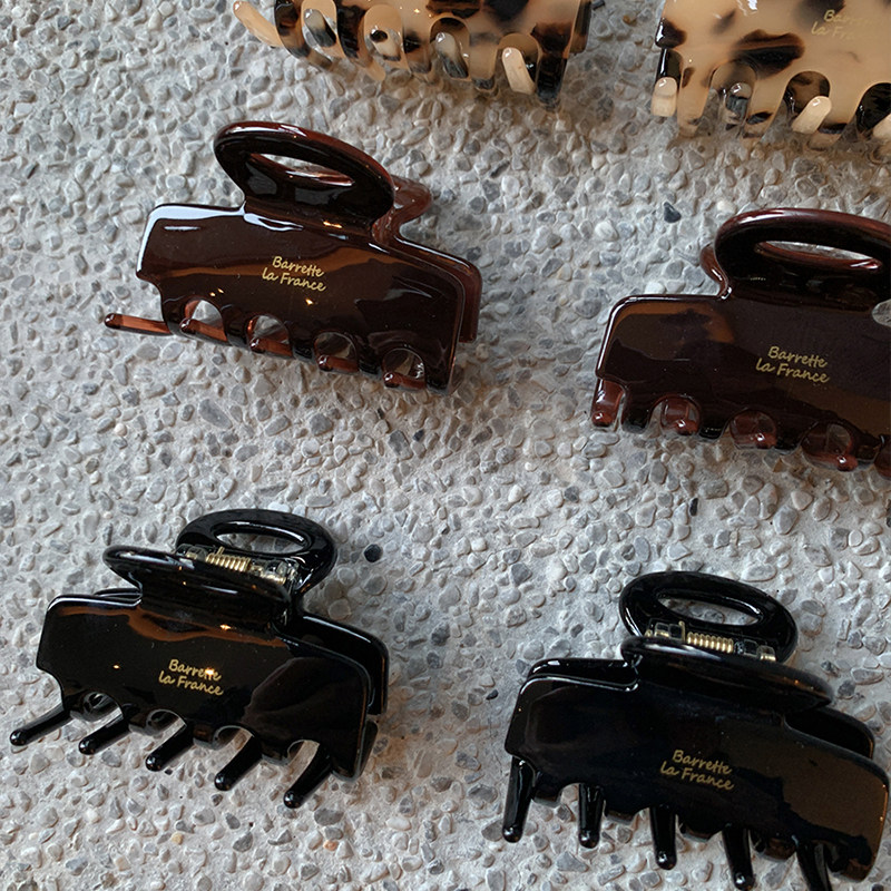 📚 ins复古方形中号抓夹 france气质正红巧克力半扎发鲨鱼夹发抓发饰
