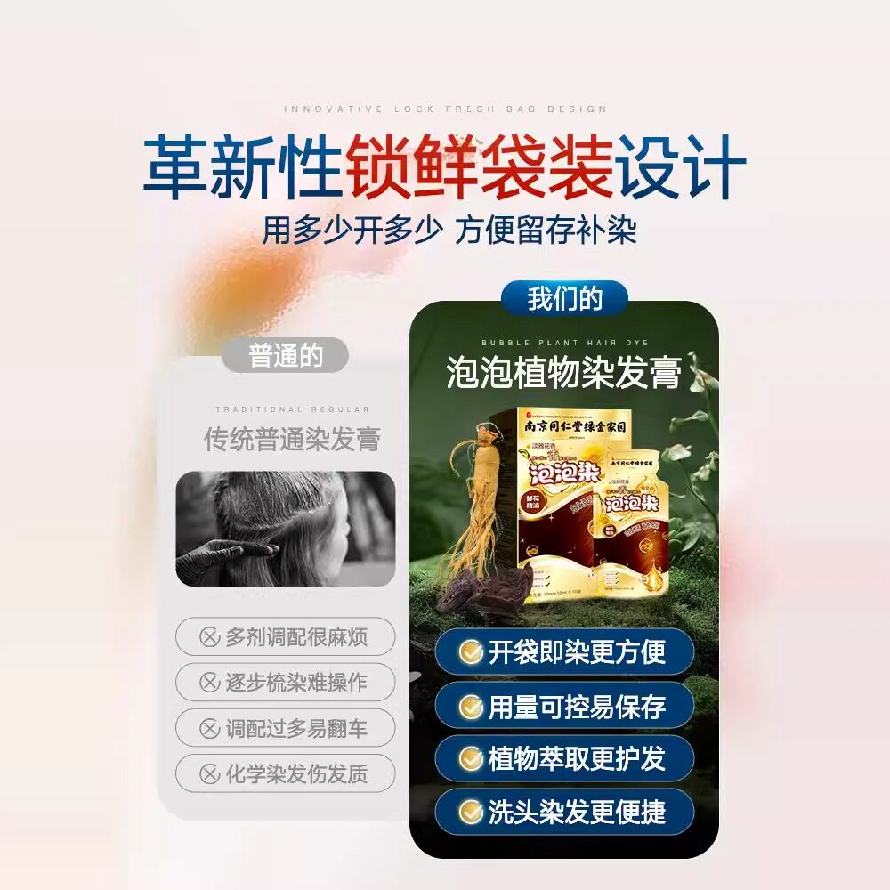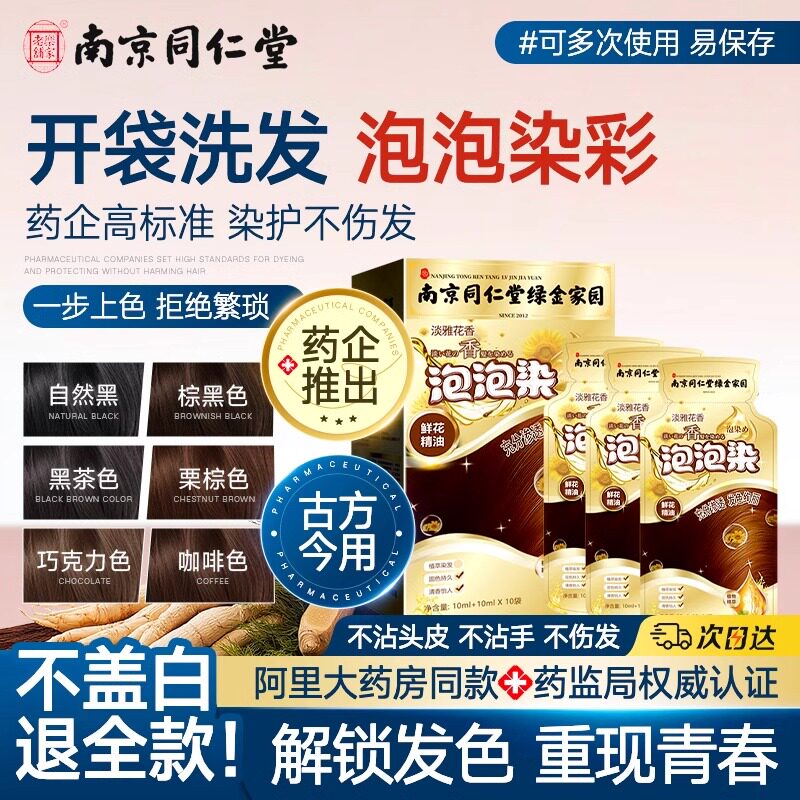 📚 同仁堂惠后植物哺乳期泡泡染染发剂备孕一洗彩发膏独立袋装防氧化