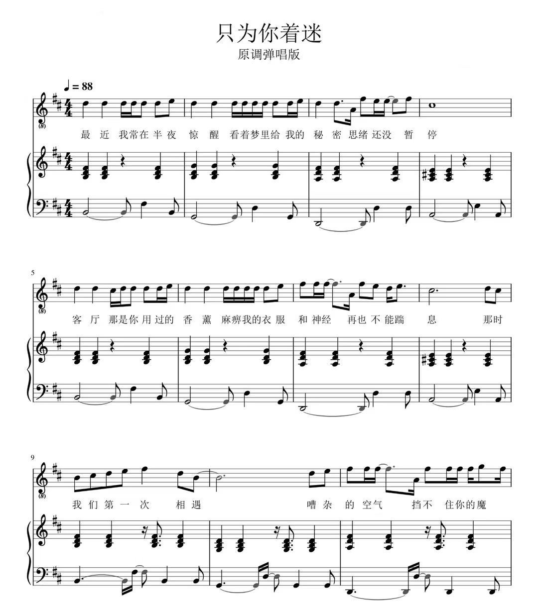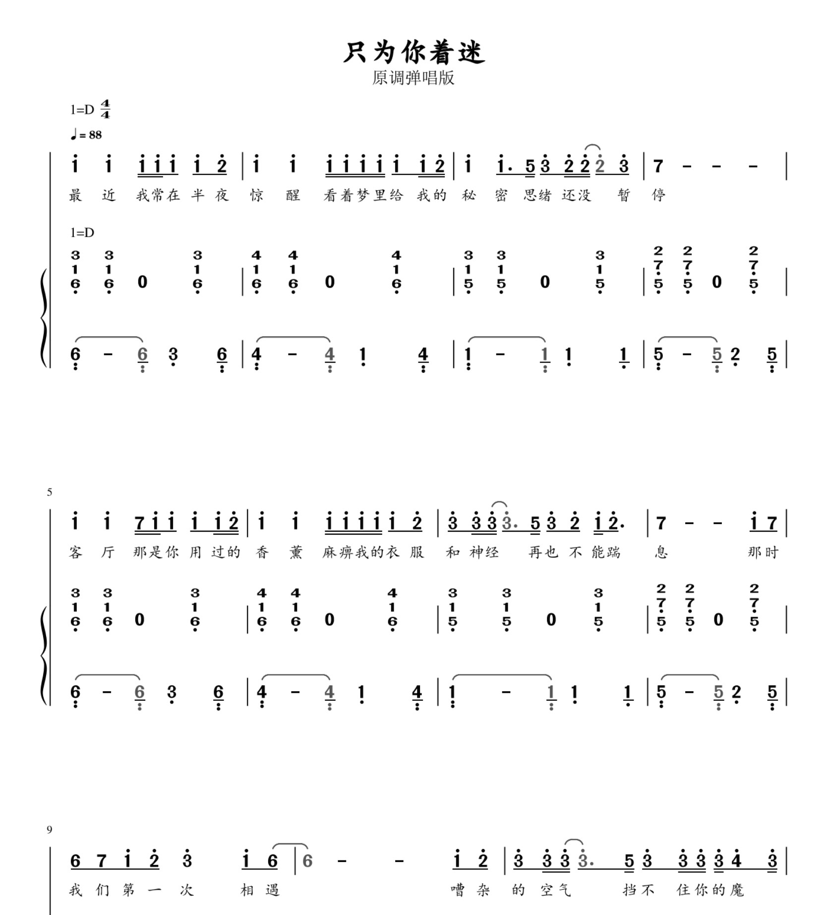 📚 只为你着迷-钢琴正谱弹唱版带歌词电子谱-流行歌五线谱+简谱版