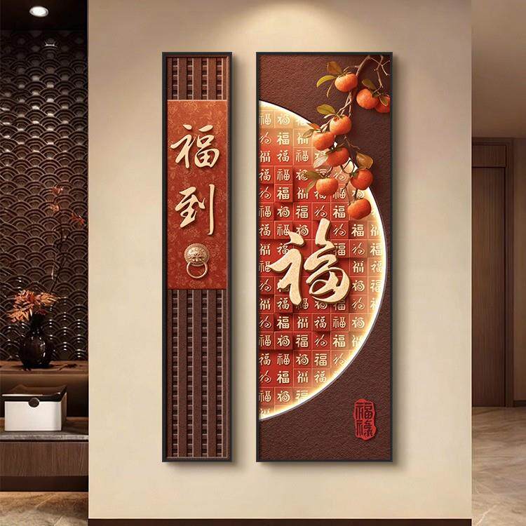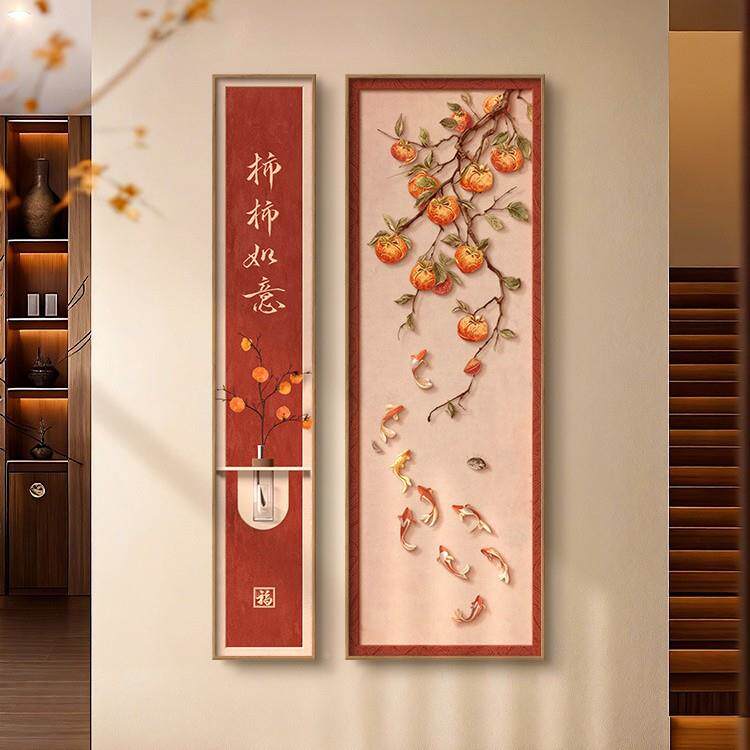 📚 柿柿如百福来意玄关装饰画中式大气新客厅走挂廊过道画新年色红二