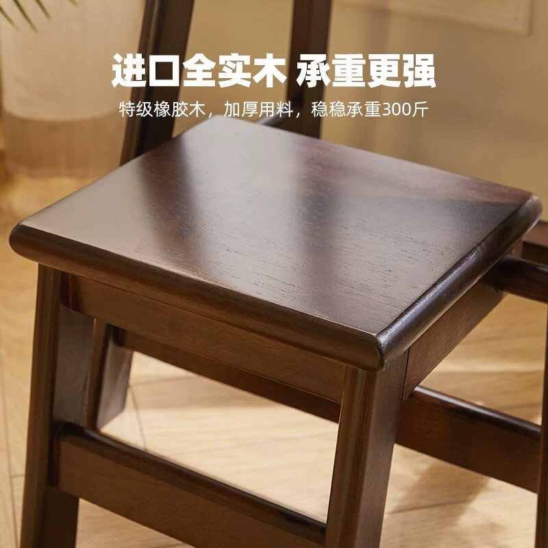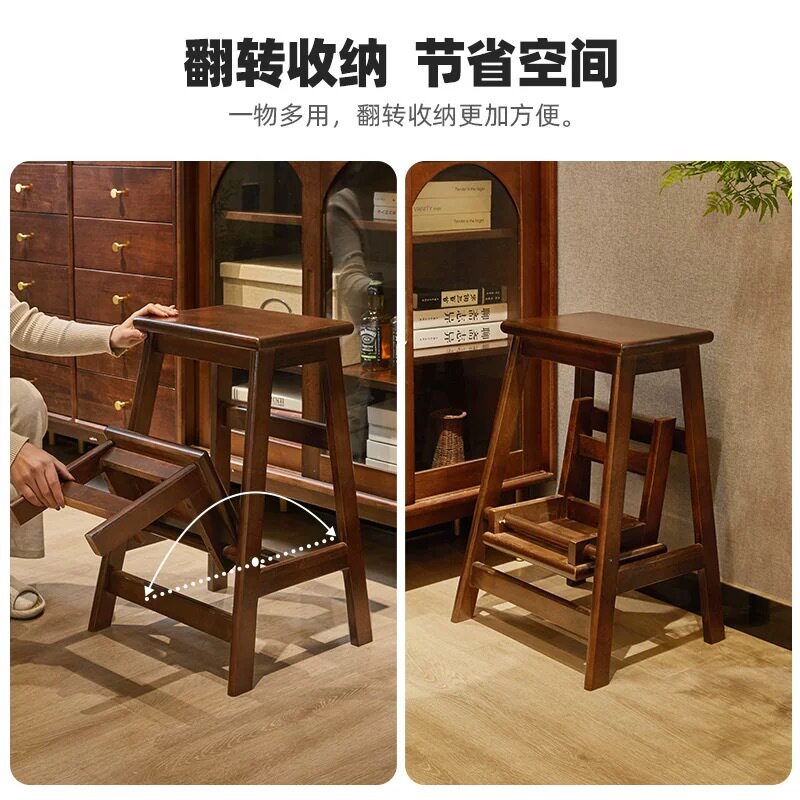 📚 胡桃色中古实木可折叠梯凳厨房家用登高凳子两用梯子楼梯椅置物凳