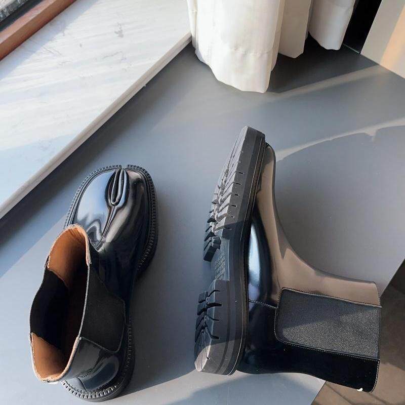 📚 新款复古真皮黑色短靴女春秋单靴增高分趾靴厚底切尔西短靴tabi靴