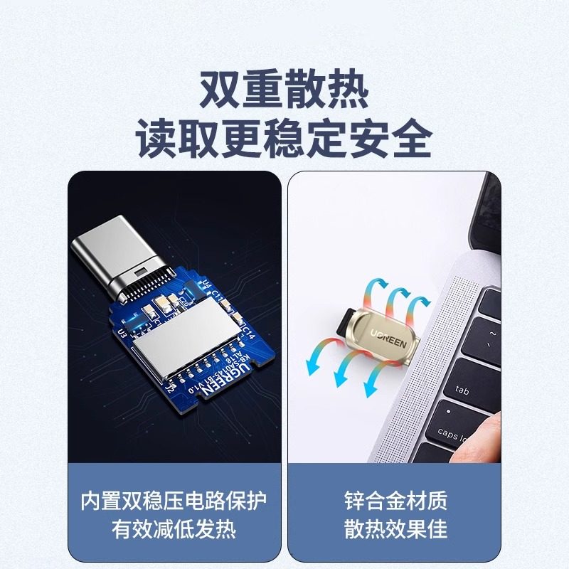 📚 绿联typec安卓手机高速读卡器usb3.0车载两用tf卡小型sd内存otg多功能迷你U盘转换适用于华为小米苹果电脑