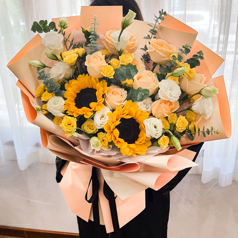 📚 香槟玫瑰向日葵花束同城广州郑州武汉深圳东莞上海湖南生日配送