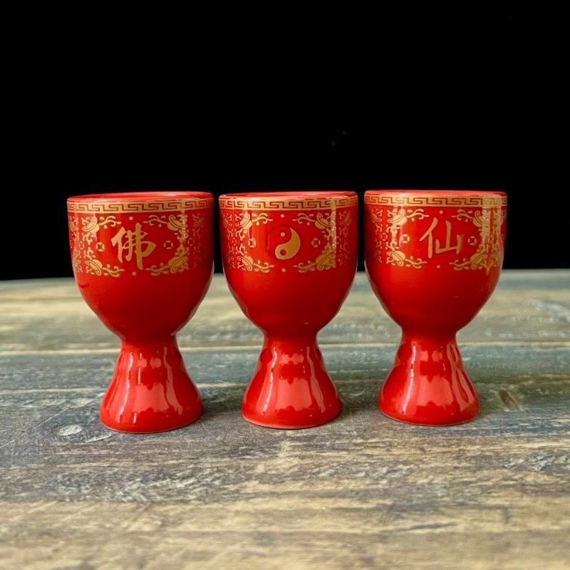📚 佛道仙酒杯供杯茶杯供奉陶瓷佛具道家寺院祭拜红色装酒杯