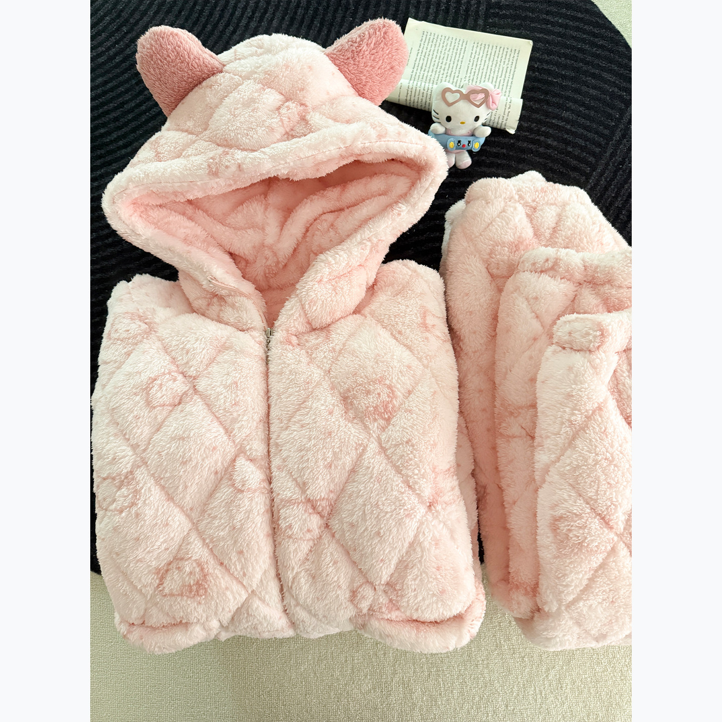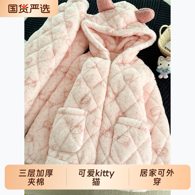 📚 hellokitty睡衣女秋冬季珊瑚绒加绒加厚冬天三层夹棉家居服可外穿