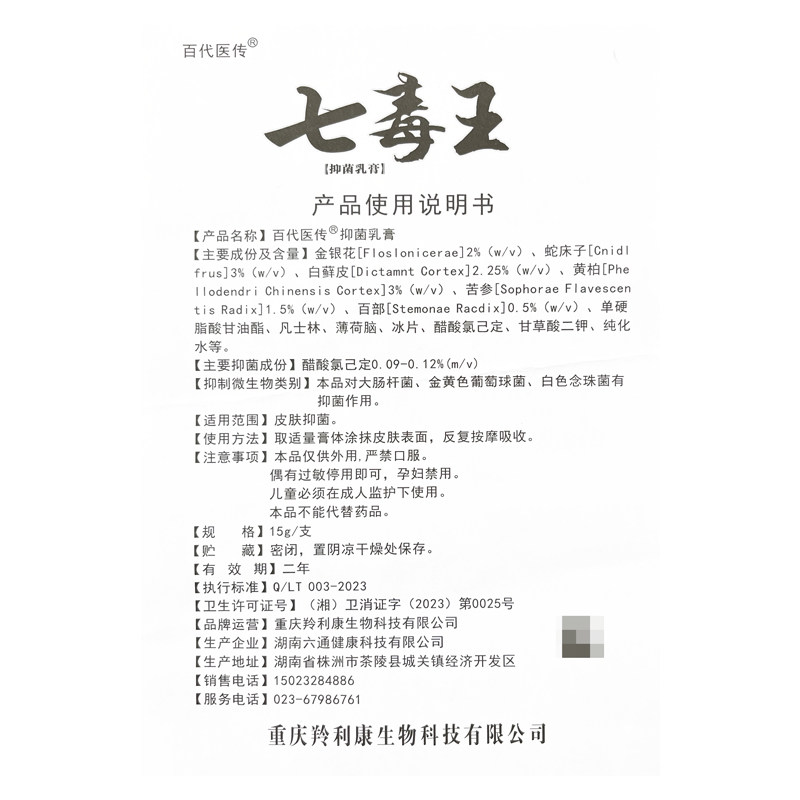 📚 【官方正品】百代医传七毒王草本抑菌乳膏皮肤外用软膏15g