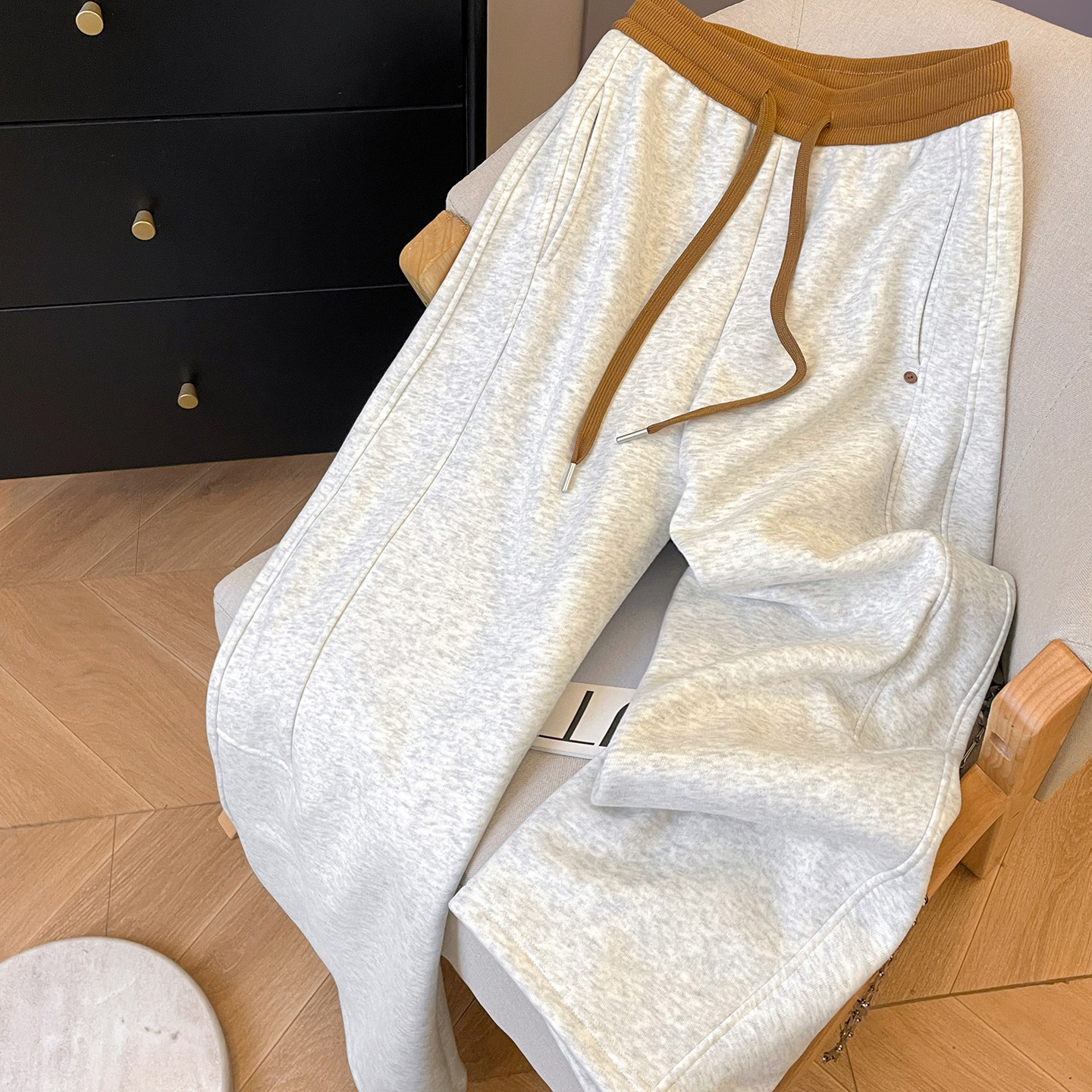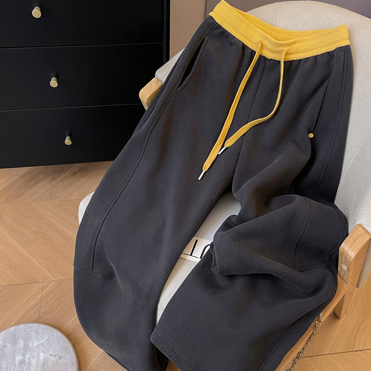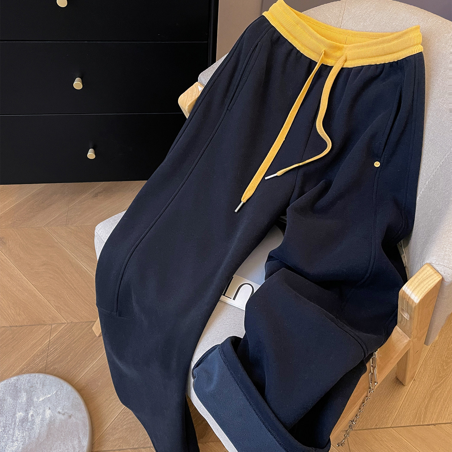 📚 小C家 抽绳拼色高腰卫裤女款2025新款冬加绒宽松弯刀裤松紧腰裤子