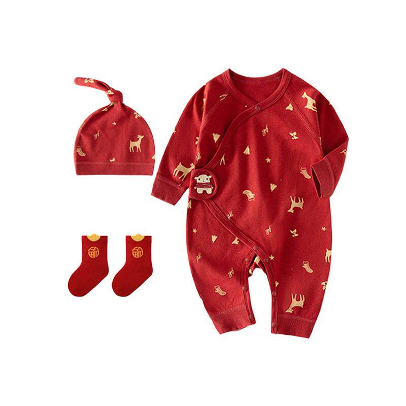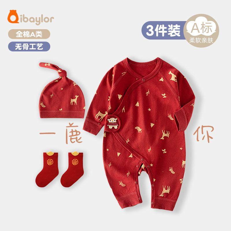 📚 新生婴儿儿衣服0-3个月春秋装男女满月套装百天宝宝拜年服连体衣